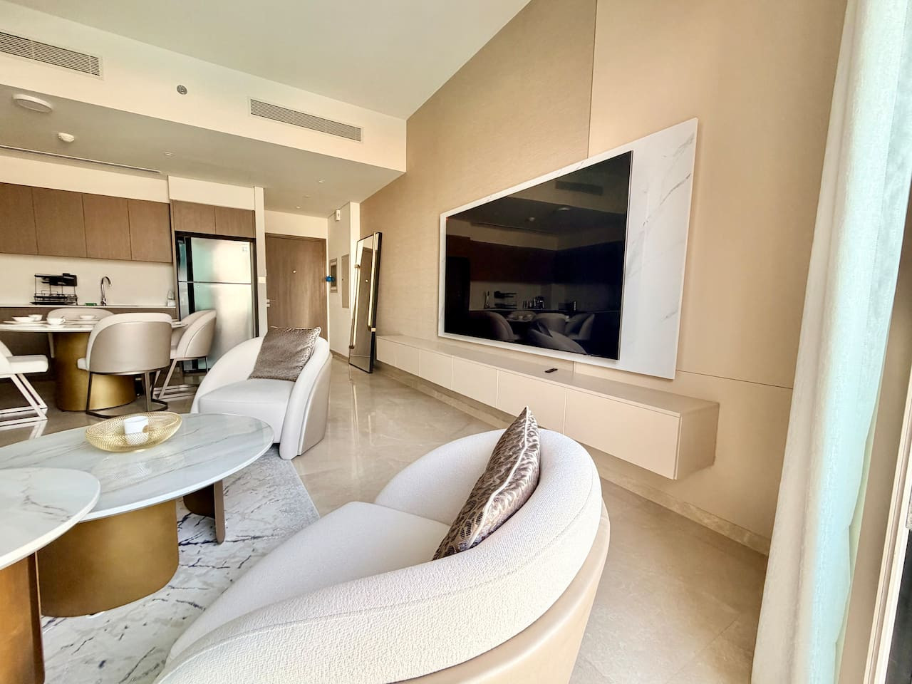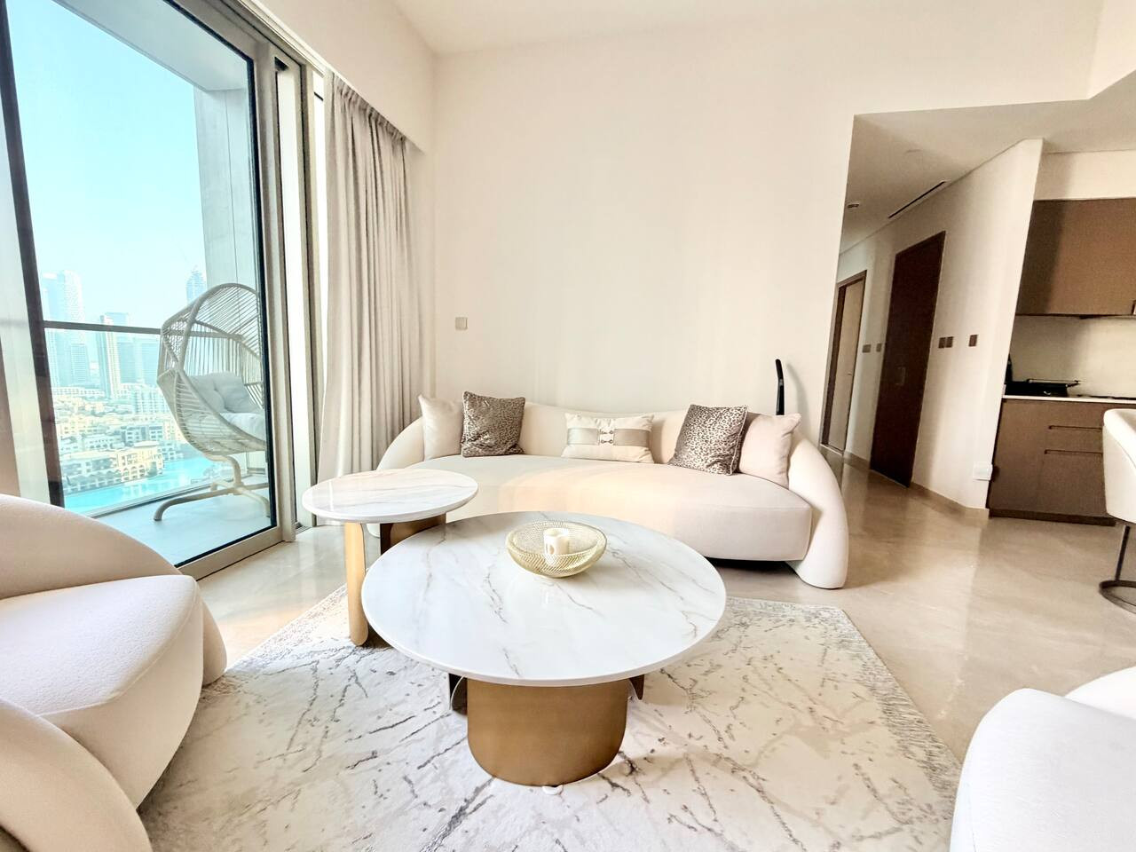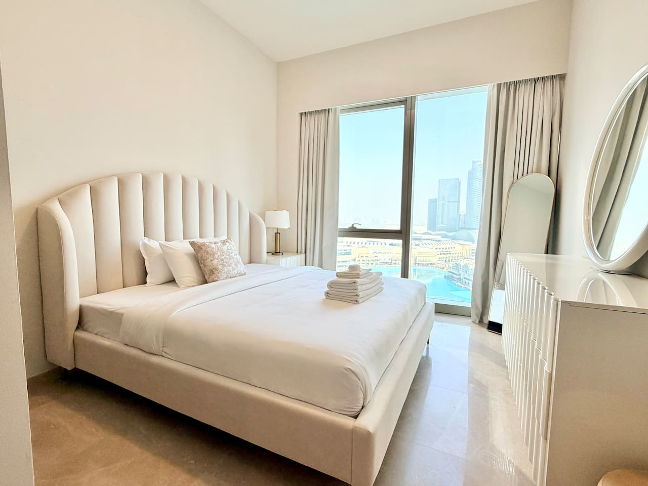 Experience unmatched elegance in this premium 2-bedroom luxury residence located on the 21st floor of the iconic Grande Signature Tower in Downtown Dubai. Designed for comfort and style, this stunning home offers breathtaking, unobstructed views of the Burj Khalifa and the Dubai Fountain from both bedrooms, the living room, and the private balcony—a rare and unforgettable feature. Step into a bright, modern space with high-end finishes, floor-to-ceiling windows, and tasteful contemporary décor. Both bedrooms feature plush king-size beds, ensuring restful nights, while two beautifully appointed bathrooms add convenience and privacy for couples, families, or business travelers. The open-plan living and dining area is perfect for relaxation or entertaining, with the world’s most famous skyline as your backdrop. Enjoy morning coffee or evening sunsets on the balcony as the fountain show dances below. Located in one of Downtown Dubai’s most prestigious towers, you’ll have easy access to the Dubai Mall, Opera District, Burj Park, and an array of fine dining and entertainment options—all within walking distance. 🏡 Highlights: • 2 luxurious bedrooms with king beds • 2 modern, stylish bathrooms • Panoramic Burj Khalifa & Fountain views • High-floor (21st) premium position • Floor-to-ceiling windows throughout • Balcony overlooking Dubai’s most iconic landmarks • Fully equipped kitchen • Elegant contemporary interiors • Access to building amenities (pool, gym, etc.) Whether you’re visiting Dubai for leisure or business, this residence offers a truly elevated stay—where comfort meets luxury and every moment comes with a spectacular view.