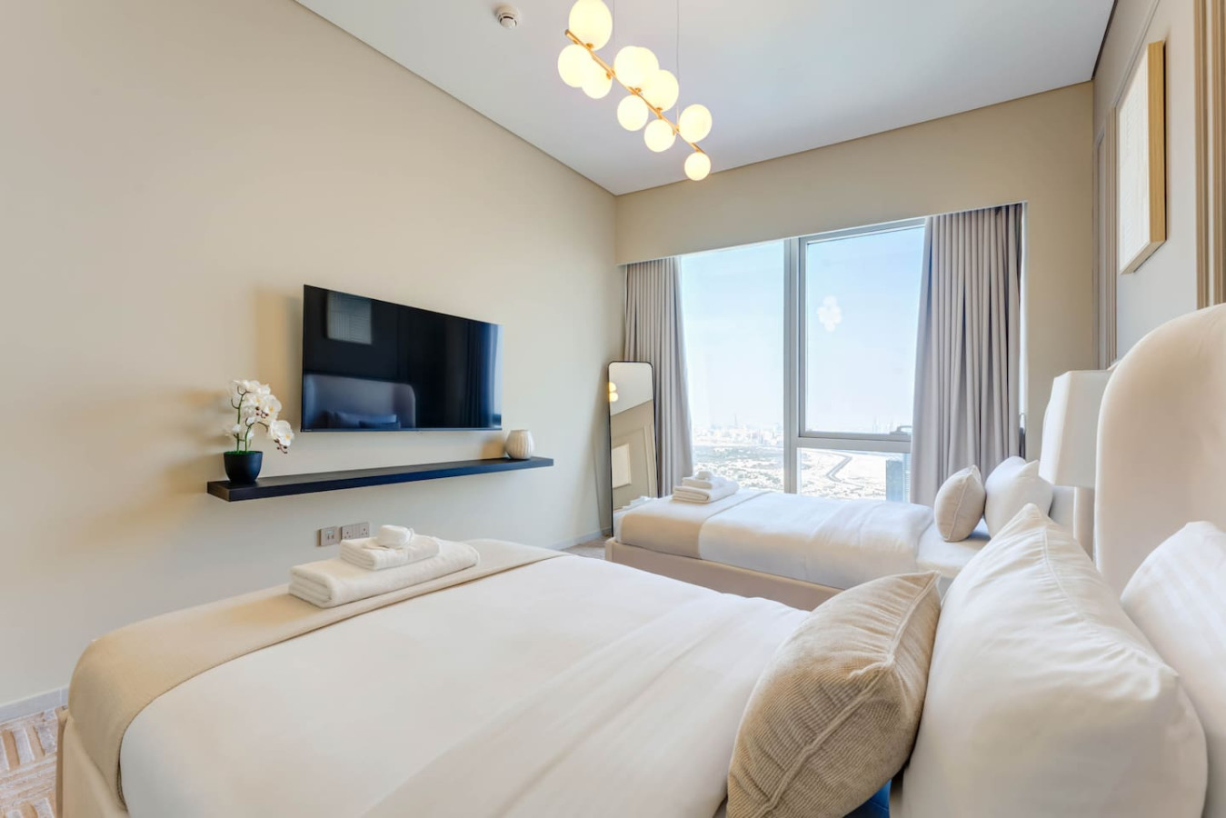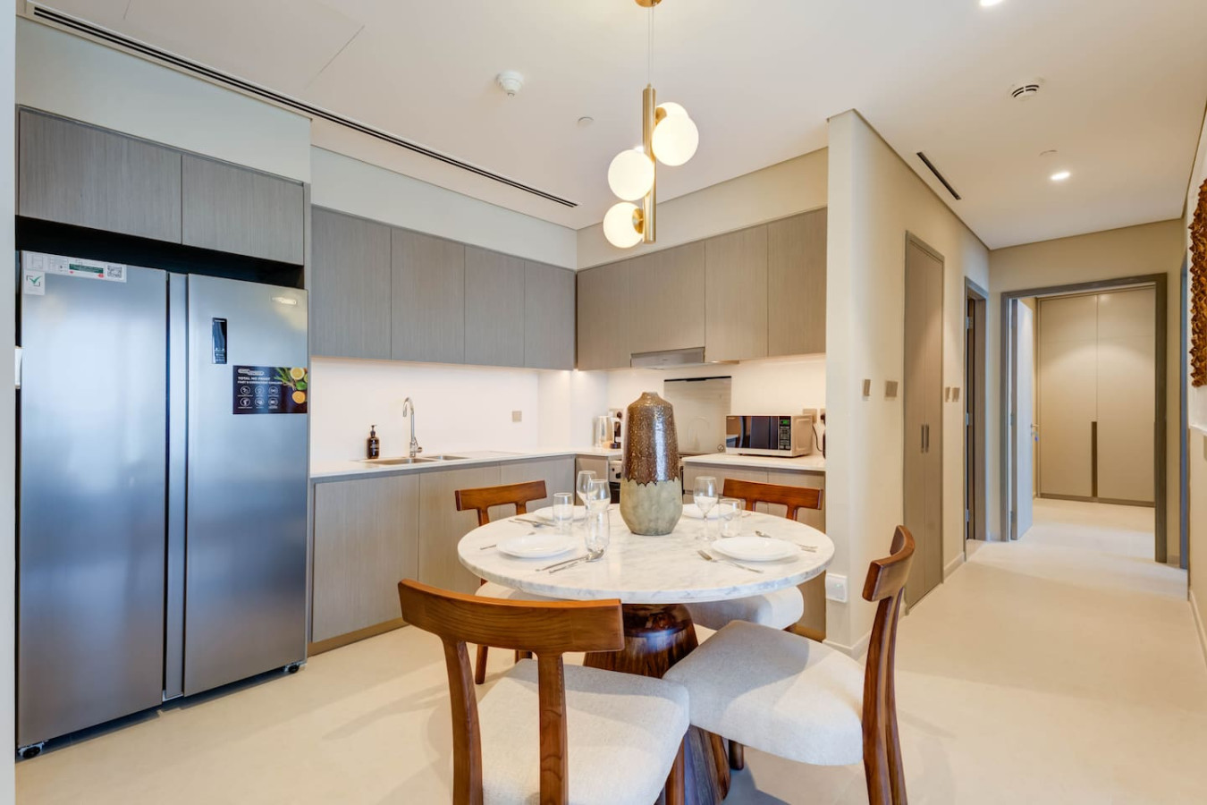 Welcome to your ultimate Dubai skyline retreat — a stunning 2-bedroom apartment perched on the 69th floor of the iconic Grande Tower, offering uninterrupted, panoramic views of the Burj Khalifa and the dazzling Downtown Dubai skyline. Step into a world of elegance where floor-to-ceiling windows flood the space with natural light, creating a serene, luxurious atmosphere day and night. From your private balcony, enjoy a front-row seat to the Burj Khalifa light show and Dubai Fountain performances — right from the comfort of your home in the sky. The apartment features: • 🛏 Two spacious bedrooms, both with premium bedding and stunning city views • 🛋 Open-concept living and dining area, stylishly furnished for comfort and sophistication • 🍳 Fully equipped modern kitchen with high-end appliances • 🚿 Two sleek bathrooms with top-quality finishes • 🌅 Private balcony facing Burj Khalifa — perfect for morning coffee or evening relaxation Building amenities include: • 🌊 Infinity pool overlooking the Burj Khalifa • 💪 Fully equipped fitness center • 🛎 24-hour concierge and security • 🚗 Secure covered parking • ☕ Lounge areas and access to the tower’s luxury facilities Located in the heart of Downtown Dubai, Grande Tower is just steps away from Dubai Mall, Souk Al Bahar, the Dubai Opera, and an endless array of fine dining and entertainment options. Whether you’re in Dubai for business or leisure, this apartment offers the perfect blend of luxury, convenience, and breathtaking views — making every moment truly unforgettable. You will be greeted by one of representatives in person during our checkin an after hours checkin fee of AED150 will be insured for checkins between 10pm - 7am