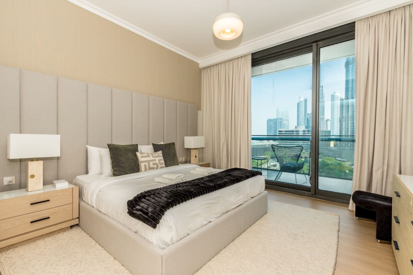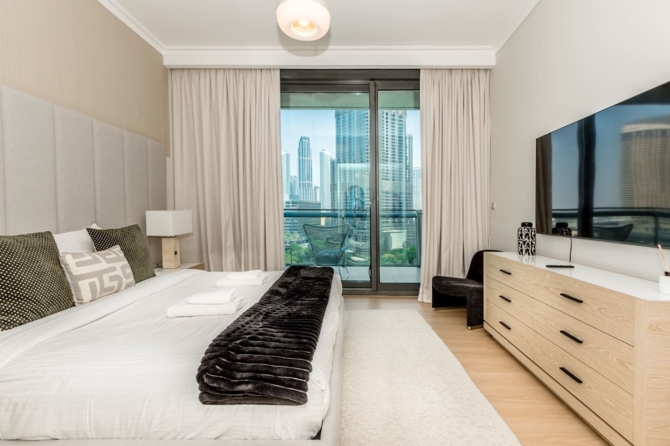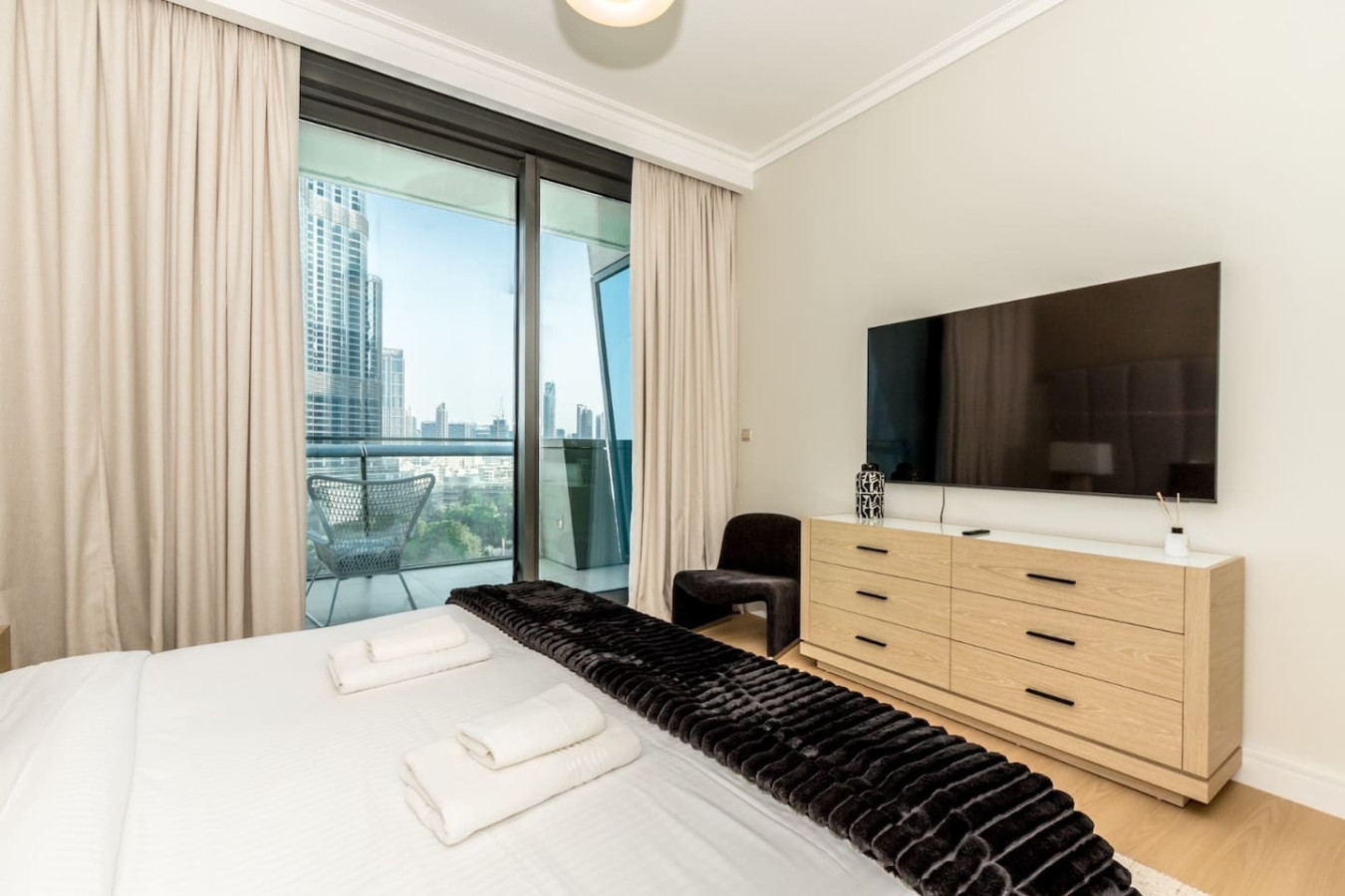 Step into one of Downtown Dubai’s most coveted addresses. This fully upgraded 2-bedroom apartment in Burj Vista Tower 1 offers uninterrupted, front-row Burj Khalifa views from every room—both bedrooms, the living area, and two private balconies. Designed to a high standard throughout, the apartment blends modern luxury with comfort and space, making it ideal for families, couples, or executive stays. The Space • 2 spacious bedrooms, each featuring a king-size bed and floor-to-ceiling windows with direct Burj Khalifa views • 2 full bathrooms plus an additional guest powder room • Bright, open-plan living and dining area with iconic skyline views • Two balconies, perfect for morning coffee or evening city lights • Fully upgraded interiors including high-quality finishes, flooring, and bespoke details • Fully equipped modern kitchen suitable for short or extended stays Why You’ll Love It • Rare layout with Burj Khalifa views from every room • Prime Downtown location, steps from Dubai Mall, fountains, and world-class dining • High-floor perspective offering privacy, light, and breathtaking day-to-night views • Ideal for luxury short-term stays, business travelers, or special occasions Building & Location Burj Vista is one of Downtown Dubai’s most prestigious residential towers, offering direct boulevard access, premium facilities, and unbeatable proximity to the city’s top landmarks—all while enjoying a quiet, residential feel. This is not just a stay—it’s a front-row seat to Dubai’s most iconic view.